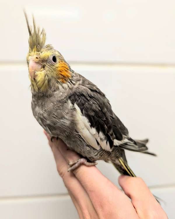 Come say hello to Hei Hei, our ADORABLE Grey Cockatiel! Hei Hei just loves to be held and interacted with. They are just the sweetest, so we can’t wait to find them their forever home who will gives lots of love and affection! Socialization starts at 4 weeks of age, and we have our birds live with us until they have begun the socialization process.